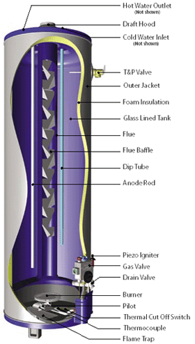 · 陶瓷保護(ceramic shield)內膽內層(專有技術)——內膽內層在華氏1600。F高溫下溶敷了厚厚一層堅固耐用的鈷蘭色玻璃陶瓷層,起防腐內層的作用,有效期可達二十年以上。
